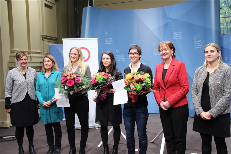 Sie haben sich alle drei mit dem Thema Gewalt auseinandergesetzt, wenn auch auf völlig unterschiedliche Weise. Heute (16. November) wurden die Arbeiten von Sandra Weger, Verena Cornella und Andrea Fleckinger prämiert. "Das Wesentliche dieses Preises ist, dass wir das öffentliche Interesse auf Themen lenken, die diese Sichtbarkeit brauchen", sagte Martha Stocker, Landesrätin für Chancengleichheit. Ulrike Oberhammer, Präsidentin des Landesbeirats für Chancengleichheit, unterstrich, wie vielfältig die Arbeiten waren, die eingereicht wurden.