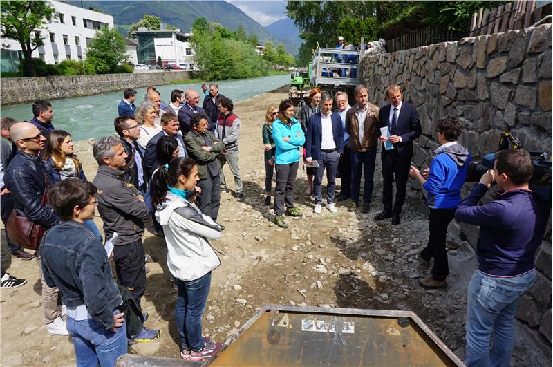 Als symbolischer Akt wurde das Leitbild des Projektes in die neue Uferverbauung eingemauert. Damit wird die Willenserklärung "Lebensraum Fluss – nachhaltig nutzen, erleben, attraktiv gestalten" zum Fundament des Hochwasserschutzes im mittleren Eisacktal.