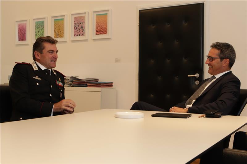 Carabinieri-Kommandant Mennitti verlässt im kommenden Juli Südtirol. Heute hat er Landeshauptmann Kompatscher seinen Abschiedsbesuch abgestattet.