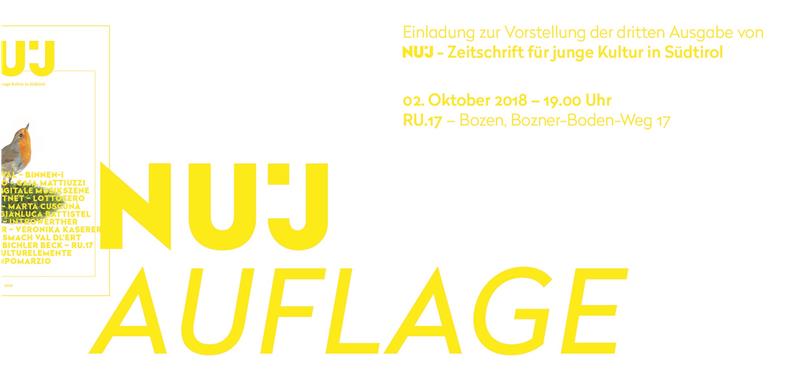 Vor drei Jahren ist die Zeitschrift für junge Kultur in Südtirol mit dem Titel NUJ erstmals erschienen. Bestreben des Landes beziehungsweise der deutschen Landeskulturabteilung als Herausgeber ist es, der jungen Kultur und dem jungen Kulturschaffen Sichtbarkeit zu verleihen und den künstlerischen Nachwuchs des Landes stärker ins Licht zu rücken. Dabei spiegelt die Zeitschrift auch die sprachliche Vielfalt der jungen Kulturszene wider.