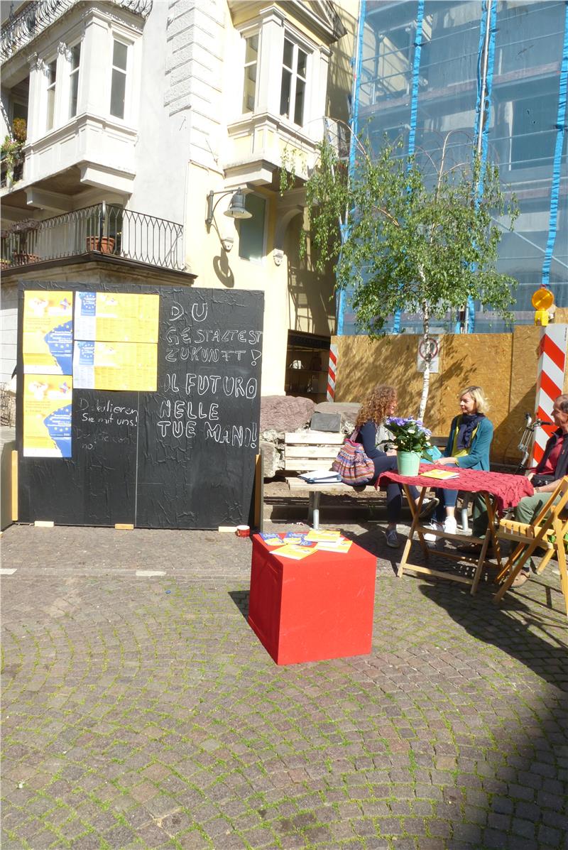 Die Aktionstage Politische Bildung sind heute Vormittag (2. Mai) am Kornplatz in Bozen eröffnet worden. "Politische Bildung soll Menschen dazu ermutigen an gesellschaftlichen und demokratischen Entwicklungen und Entscheidungen teilzuhaben", betonte dabei Martin Peer, Direktor im Landesamt für Weiterbildung, das die Aktionstage koordiniert und zur heutigen Eröffnung eingeladen hatte. Diese Teilhabe könne auf verschiedenste Art und Weise und durch unterschiedliche Initiativen und Aktionen erfolgen. Viele solcher Initiativen und Teilhabemöglichkeiten bieten auch in diesem Jahr die Aktionstage politische Bildung, die in Südtirol vom 2. bis 9. Mai zum zwölften Mail seit 2008 veranstaltet werden. Rund 30 Veranstaltungen zum Schwerpunktthema "Du gestaltest Zukunft!" und anderen Themen bieten der Bevölkerung die Möglichkeit sich zu informieren, sich einzubringen und mit zu diskutieren, sich eine Meinung zu bilden.