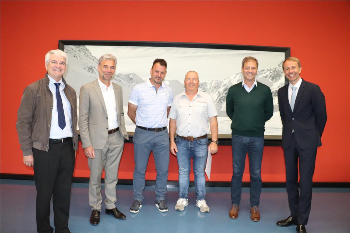 Landesrat Schuler und Agenturdirektor Pollinger dankten gemeinsam mit Ressortdirektor Klaus Unterweger und dem stellvertretenden Agenturdirektor Günther Walcher und den vier Amtsdirektoren der Agentur für Bevölkerungsschutz den zwölf Arbeitern der Wildbachverbauung für ihren 19- bis 36jährigen Einsatz.