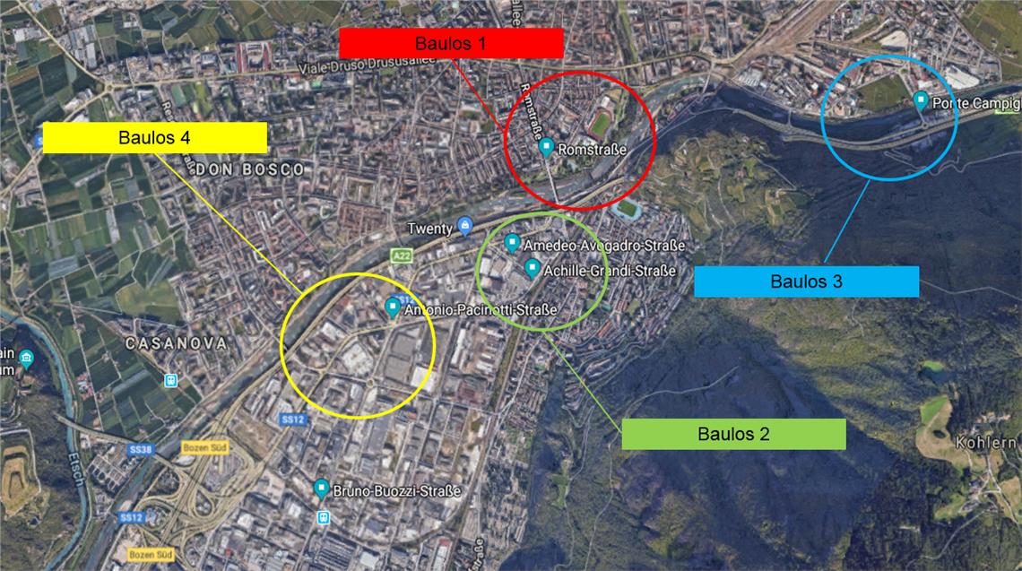 Der größte Eingriff wird in der Romstraße gemacht, wo eine Unterführung gebaut wird (31 Millionen Euro). Die anderen Arbeiten betreffen die Umgestaltung der Grandi-Straße (1,6 Millionen Euro), die Neugestaltung der Knotenpunkte in der Innsbrucker-Straße und ihrer aktuellen Verbindungen mit der Brennerstaatsstraße SS 12 (2,2 Millionen Euro) sowie die Neugestaltung des Abschnitts zwischen der Buozzi-Straße und Pacinotti-Straße ab der Einstein-Straße bis zur Galilei-Straße (7,2 Millionen).