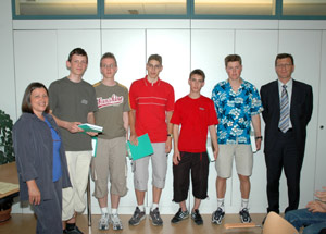 LPA - Im Rahmen einer kleinen Feier wurden am heutigen Mittwochvormittag im Sitzungssaal des Deutschen Landesschulamtes die Teilnehmerinnen und Teilnehmer an den diesjährigen Mathematik-, Informatik- und Physikolympiaden auf Landes- und Staatsebene geehrt. "Ihr alle habt hervorragende Leistungen erbracht und seid damit nicht nur für eure Mitschüler zu Vorbildern geworden", lobte Schulamtsleiter Peter Höllrigl die Jugendlichen.