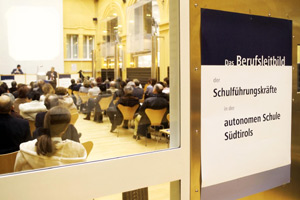An die hundert Schuldirektorinnen und Schuldirektoren nahmen an der heutigen Vorstellung teil, in deren Rahmen Rudolf Meraner, Direktor des deutschen Pädagogischen Instituts, über die PISA-Studie mit besonderer Berücksichtigung der Rolle der Schulführungskräfte sprach und Rainer Brockmeyer das Hauptreferat zum Thema "Schulleitung in der autonomen Schule" hielt.