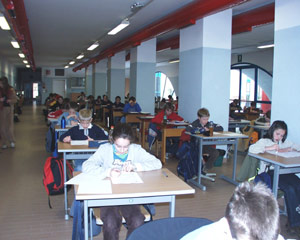 Während das Organisationsteam, Verena Stragenegg, Projektbegleiterin für Mathematik in der Grundschule, und Marta Herbst, Inspektorin für den mathematisch- naturwissenschaftlichen Unterricht am Deutschen Schulamt, die Arbeiten auswerteten, konnten sich die Schülerinnen und Schüler unter Aufsicht der Begleitpersonen mit Brett- und Kartenspielen unterhalten.