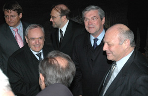 Der Einladung des Südtiroler Landeshauptmannes zum abendlichen Empfang im Felsenkeller der Laimburg hatten zahlreiche Behördenvertreter Folge geleistet. Neben den Ministern Gorbach und Lunardi waren die Landeshauptleute Herwig van Staa und Lorenzo Dellai, der Präsident der Provinz Verona, Elio Mosele, die beiden Tiroler Landeshauptmannstellvertreter Ferdinand Eberle und Hannes Gschwentner sowie die Südtiroler Landesräte Michl Laimer und Thomas Widmann gekommen. Ebenso zu den Gästen zählten der österreichische Botschafter in Rom, Alfons Kloss, die österreichische Generalkonsulin in Mailand, Eva-Maria Ziegler, Handeskammerpräsident Benedikt Gramm, Brennerautobahnpräsident Ferdinand Willeit und viele weitere Persönlichkeiten. Für die musikalische Begrüßung und Unterhaltung der Ehrengäste sorgten die Grieser Bläsergruppe, der Chor der Bäuerinnen von Rentsch-Zwölfmalgreien sowie die beiden Virtuosen Karl Hans-Peter (Trompete) und Heinrich Steinegger (Flügelhorn).