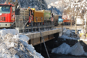 Am Donnerstag, 4. Dezember, wurde die Brücke den vorgeschriebenen Belastungstests unterzogen und dazu mit sieben voll beladenen Lkws befahren. Die Brücke trägt ohne Probleme eine Last von 33 Tonnen, heißt es aus dem Bautenressort des Landes. Ab Freitag, 5. Dezember, können die ersten Fahrzeuge über die Brücke fahren und die Ampel für die Einbahnregelung kann abgebaut werden.