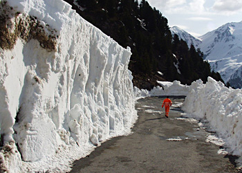 Am Wochenende ist an den Passstraßen am Sellajoch wieder rund ein Meter Neuschnee gefallen. An mehreren Stellen ist der Schnee bis zu 1,8 Meter hoch und droht auf die Straße abzurutschen. Am gestrigen Sonntag, 8. Februar, hat es deshalb am Sellajoch einige kontrollierte Sprengungen unter Aufsicht des Straßendiensts des Landes gegeben, um Lawinen auszulösen und dann die Schneemassen beseitigen zu können.