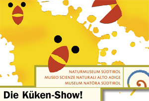(LPA) Küken sind in der Zeit vor Ostern bereits traditionell die Stars im Naturmuseum in der Bozner Bindergasse. Bis Ostermontag, 13. April, können Kinder und Erwachsene im Museum Küken schlüpfen sehen. Eröffnet wird die Küken-Show am kommenden Dienstag, 17. März, von Landesrätin Sabina Kasslatter Mur.