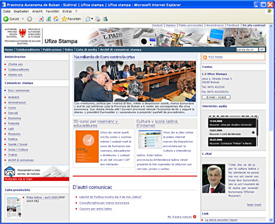 (LPA) Unter der Internetadresse www.provinzia.bz.it/uspl ist die neue Homepage des Landespresseamtes in ladinischer Sprache seit heute, 23. April, online, mit den neuesten Nachrichten von Landesregierung und Landesbetrieb mit Fotos, Audio- und Video-Files.
