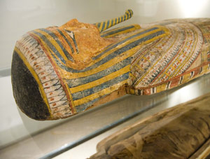 Keine andere Kultur hat die Technik des Einbalsamierens so perfektioniert wie die der Ägypter. Dahinter steckte eine ganz bestimmte Vorstellung: Um den Toten ein Weiterleben im Jenseits zu ermöglichen, musste der Körper intakt bleiben, nur so konnte die Seele dorthin zurückkehren. Prachtvoll bemalte Mumiensärge waren im alten Ägypten so etwas wie die Identitätskarte des Toten, der darin lag. Zeichnungen und Hieroglyphen verrieten, welche Position er zu Lebzeiten in der Gesellschaft eingenommen hatte, wie seine Lebensgeschichte aussah und was ihm die Verwandten für die Reise in das Jenseits wünschten.