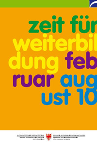 LPA - Am 18. Jänner 2010 ist es wieder soweit: Ab diesem Datum ist die diesjährige Frühjahrsausgabe der Weiterbildungsbroschüre "zeit für weiterbildung" in den verschiedenen Landhäusern, Bibliotheken und Bildungseinrichtungen erhältlich. Auch diesmal hat das Landesamt für Weiterbildung eine Vielzahl von Fortbildungsangeboten verschiedenster Weiterbildungsanbieter gesammelt.