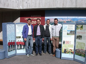 Ein Reisekoffer am Karersee ist dem Tourismuspionier, Hoteldirektor, Politiker und Alpinisten Theodor Christomannos (1854-1911) gewidmet. Er ist bis heute die wohl schillerndste Figur in der Geschichte des Tiroler Fremdenverkehrs. Sein Ziel war die touristische Erschließung des Landes, insbesondere durch die Erbauung von Gebirgsstraßen und großen Alpenhotels. Vor 115 Jahren, im Sommer 1896, konnte Christomannos mit der Eröffnung des Grandhotels Karersee eines seiner größten Projekte verwirklichen.