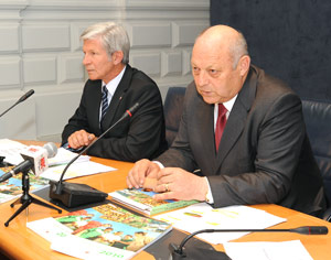 LPA - Auf so unterschiedliche Themen wie den Zustand des Waldes, auf Murmeltiere, Milchmenge, Weinproduktion, Bären und den Bioanbau sind Landeshauptmann Luis Durnwalder, der in der Landesregierung für Forstwirtschaft sowie das land- und forstwirtschaftliche Versuchswesen zuständig ist, und Agrarlandesrat Hans Berger heute (17. Mai) eingegangen. Sie stellten im Palais Widmann in Bozen gemeinsam den Agrar- und Forstbericht 2010 vor.