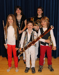 Kategorie "Offene Kammermusik", Altersgruppe B: Greaschtl mit Johanna Strobl, Samuel Strobl, Michael, Sullmann, Rebecca Sullmann, Valeria Sullmann, Musikschule Klausen/Seis und Brixen (Leitung: Ricarda Janissen und Martina Gasser)