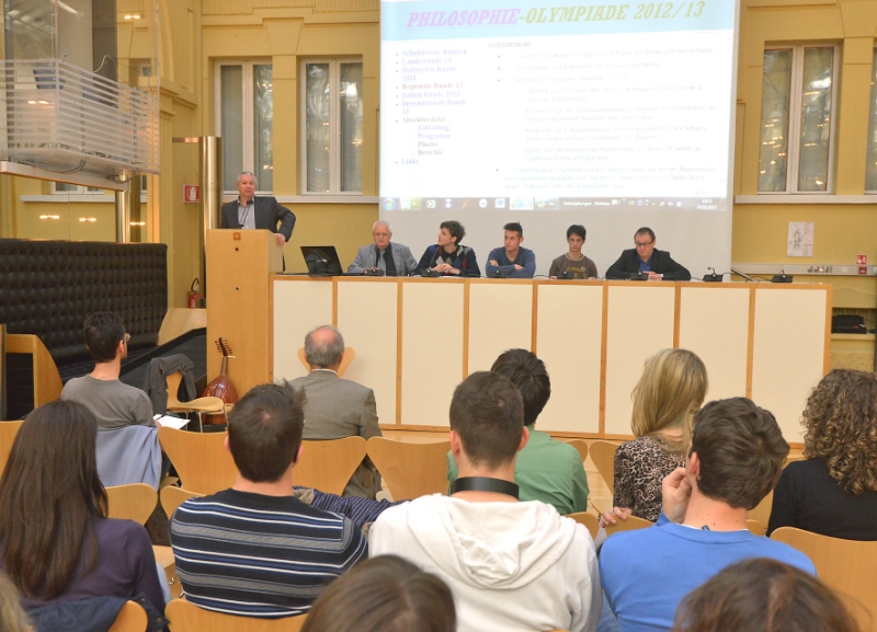 "So schwer", erläuterte Landeskoordinator Josef Reier, Philosophie-Lehrer am Brixner Realgymnasium, "wie in diesem Jahr haben wir uns als Jury noch nie getan, weil so viele gut geschriebene Essays zu bewerten waren". Mit der Philosophie-Olympiade, betonte er, "sollen bei den Jugendlichen vor allem Freude an eigenständigem und kreativem Denken und die Fähigkeit der Auseinandersetzung und Ausformulierung eigener Positionen gefördert werden". "Es braucht", unterstrich Inspektor Ferdinand Patscheider, "Mut und Selbstbewusstsein, sich dieser Herausforderung zu stellen". Den Schülerinnen und Schülern gab er den Wunsch mit auf den Weg, "den Rucksack, den ihr von der Schule bekommt, gut zu nutzen". Das beste Essay im Landeswettbewerb, in den sich 13 Schülerinnen udn Schüler einegschrieben haben, hat Alexander Rabensteiner vom Realgymnasium Brixen geschrieben, über eine wissenschaftskritische Aussage von Paul K. Feyerabend; gemeinsam mit seinem Klassenkollegen Fabian Frener - dem Zweitplatzierten der Landesrunde - wurde er deshalb zur österreichischen Bundesausscheidung in Salzburg zugelassen, wo er als Drittplatzierter abschnitt, Fabian Frener erreichte Platz 10; als Themen standen etwa Zitate von Kierkegaard oder Karl Popper zur Auswahl, eines der Themen war die Euthanasie. Simon Gander vom Realgymnasium Sterzing hingegen beteiligte sich - als Drittplatzierter der Landesrunde - an der Regionalrunde, bei der es galt, in englischer Sprache ein Essay zu verfassen, etwa über ein Zitat aus Niccolò Machiavellis "Principe"; als Vertreter Südtirols in Rom wurde Simon Gander anschließend Achter. Bei der internationalen Runde mit Teilnehmenden aus 46 Ländern im dänischen Odense ging die Goldmedaille nach Ungarn, Silber errangen Schüler aus Österreich, Indien und Korea, Bronze erhielt eine Kroatin.