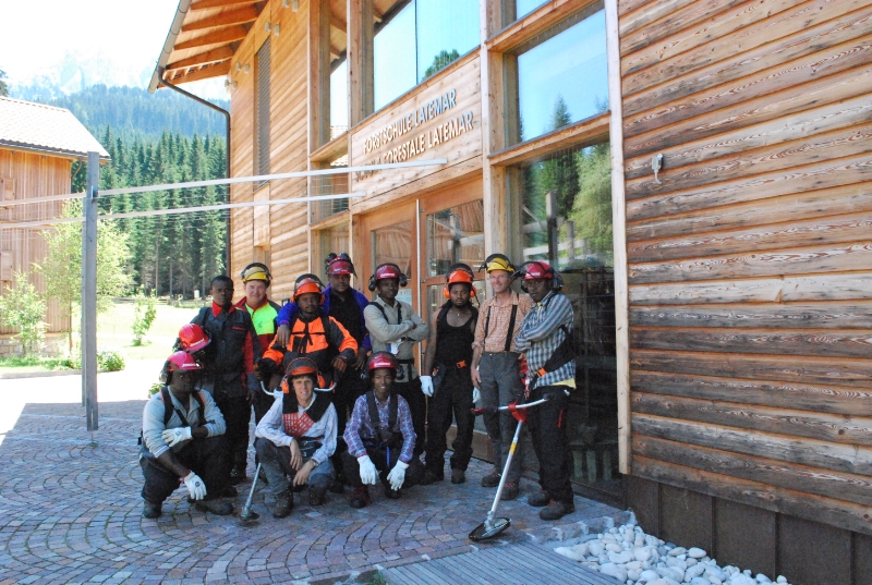 LPA - Acht ursprünglich aus Nigeria und Guinea stammende Flüchtlinge besuchten vom 29. Juli bis zum 2. August in der Forstschule Latemar einen Freischneider-Kurs. Er wurde in Zusammenarbeit mit dem Caritas-Flüchtlinghaus "Arnika" in Meran organisiert, wo die Flüchtlinge zuletzt beherbergt waren.
