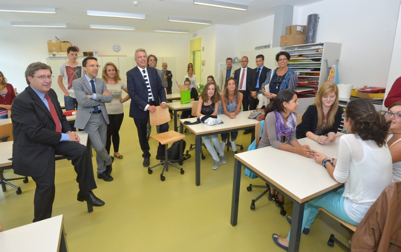 LPA - Über die Ausbildung in den Landesberufsschulen mit italienischer Unterrichtssprache hat sich Arbeits- und Sozialminister Giovannini im Rahmen seines Aufenthaltes in Bozen heute (10. September) Nachmittag in der italienischen Landesberufsschule "Emmanuel Levinas" in Haslach informiert, begleitet von Schullandesrat Tommasini und Arbeitslandesrat Bizzo, Schulamtsleiterin Minnei und Bereichsleiter Franco Russo sowie Schuldirektor Giorgio Bissolo.