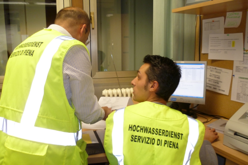 Bereits seit Jahren probt die Landesabteilung Wasserschutzbauten gemeinsam mit der Landesabteilung Brand- und Zivilschutz, der Berufsfeuerwehr, dem Hydrographischen Landesamt, dem Regierungskommissariat, den Ordnungskräften und den Freiwilligen Feuerwehren im Rahmen einer Hochwasserübung den Ernstfall an Etsch und Eisack. Am Freitag (15. November) war es wieder soweit: Nachdem die Pegelstände an Etsch und Eisack fiktiv die Vorwarnstufe erreicht hatten, wurden die Hochwasserzentrale der Landesabteilung Wasserschutzbauten, das Lagezentrum der Berufsfeuerwehr, die Bezirkseinsatzzentralen Meran, Vilpian, Neumarkt und Brixen sowie die Pegelmessstellen an den beiden Flüssen besetzt. Dabei gingen die Verantwortlichen strikt nach dem Alarm- und Einsatzplan vor. "Die Informationskette hat einwandfrei funktioniert," sagt Rudolf Pollinger, Direktor der Landesabteilung Wasserschutzbauten, der am Freitagabend als Beobachter im Einsatz war. Für die Landeseinsatzleitung während der Übung zeichnete Peter Egger verantwortlich.