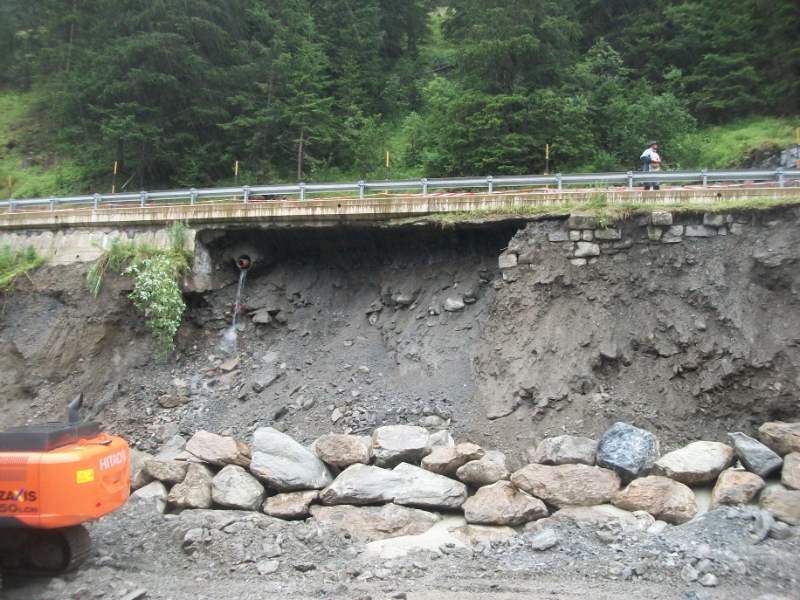 Tags darauf wurde mit der Wiederherstellung der Mauer mit Zyklopensteinen und Beton unterhalb der Straße begonnen. Während der Arbeiten blieb die Straße einspurig befahrbar. "Knapp eine Woche später", erklärt der Direktor der Landesabteilung Wasserschutzbauten Rudolf Pollinger, "konnten die Arbeiten abgeschlossen werden, dank der ausgezeichneten Zusammenarbeit mit dem Straßendienst Vinschgau, dem Landesamt für Geologie und Baustoffprüfung und der Gemeinde Stilfs".