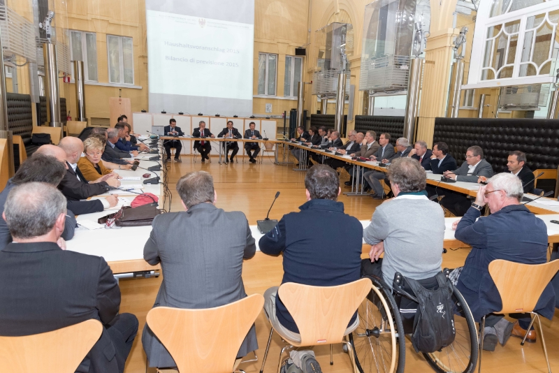 "Wir stehen noch am Anfang des Prozesses, in dessen Verlauf der Haushaltsentwurf für das Jahr 2015 erstellt wird, deshalb interessieren uns Ihre Ideen, Anmerkungen und Hinweise", so Kompatscher heute gegenüber den Vertretern von Wirtschaftsverbänden und Gewerkschaften, die er gemeinsam mit den Mitgliedern der zuständigen Gesetzgebungskommission zu einer Anhörung ins Palais Widmann geladen hatte. Dabei wurden die Grundlagen des Haushalts 2015 ebenso vorgestellt, wie ein erstes grobes Zuteilungsschema.