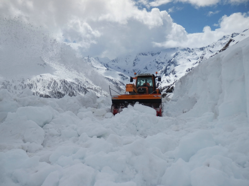Nach dem vollzogenen Durchbruch bis auf die österreichische Seite der Passstraße am auf 2474 Meter Meereshöhe gelegenen Timmelsjoch und auf die Seite der Provinz Sondrio am auf 2757 Meter Meereshöhe gelegenen Stilfser Joch müssen die angrenzenden Felshänge gesäubert, die durch die anfallenden Schneemaßen zerstörten Mauern wiedererrichtet, der Asphaltbelag ausgebessert, die Fahrbahn gereinigt und die im Herbst abgebauten Sicherheitseinrichtungen wie Leitpflöcke, Verkehrsschilder usw. wieder angebracht werden.