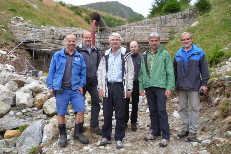 Die Baustelle auf der Tablander Alm oberhalb Partschins war das zweite Ziel des heutigen Lokalaugenscheines durch Landesrat Schuler. Im August 2008 hatte ein Unwetter Partschins heimgesucht. Rund 70.000 Kubikmeter Material aus dem Ziel-, dem Holer und dem Höllentalbach hatten den Sportplatz und den Fahrradweg verwüstet, die Straße durch den Vinschgau verlegt, Obstanlagen zerstört, die Stromversorgung von Tabland und Rabland unterbrochen und vier Brücken mitgerissen. Nach einer Reihe von Sicherungsmaßnahmen ist das Landesamt für Wildbach- und Lawinenverbauung West zurzeit dabei im Oberlauf des Höllentalbaches ab der Tablander Alm eine Sperrenstaffelung mit rund 30 Sperren zu errichten. Der Bach hat sich in den vergangenen Jahren hier stark eingetieft, weshalb bei einem Unwetter größere Mengen Material abgehen und wieder bis nach Partschins vordringen könnten.