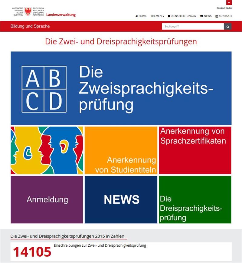 Das Projekt ist Teil der Bestrebungen, die Landesverwaltung bürgerfreundlicher zu gestalten. Diese Woche wurden von der Südtirol Informatik AG (SIAG), welche das Projekt im Auftrag des IT-Ressorts betreut, zwei neue Webseiten frei geschalten: jene der Dienststelle für Zwei- und Dreisprachigkeitsprüfungen und die Webseite für Integration.
