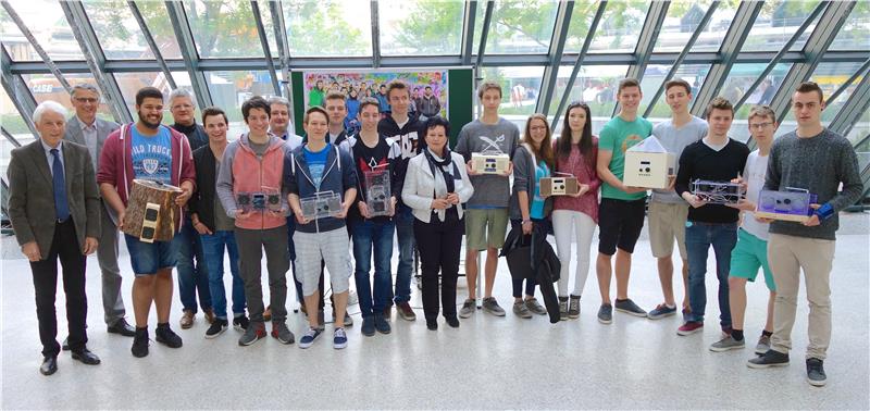 Bei ihrer Projektarbeit haben sich die Schülerinnen und Schüler der Klasse 4iB an der Technischen Fachoberschule "Max Valier" in Bozen intensiv mit der neuen Radiotechnologie, dem Design und den Herstellungsprozessen auseinandergesetzt. Unter der Leitung der Oberschullehrer Peter Kofler und Eugen Bertagnolli erhielten sie die Aufgabe, ein voll funktionsfähiges Digitalradio mit möglichst innovativem Design zu bauen. Die Rundfunkanstalt Südtirol RAS hat dafür zu Schulbeginn die elektronischen Bauteile kostenlos zur Verfügung gestellt und jetzt die besten Geräte prämiert.