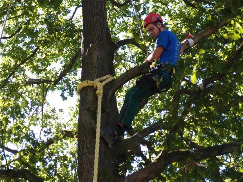 Keine Höhenangst durfte man beim Baumklettern zeigen, bei dem die Teilnehmer eine Glocke in einer Baumkrone in 13 Metern läuten mussten. Auch hier konnte sich Evi Tschager einen Sonderpreis als beste „Barfuß-Klettererin“ sichern.