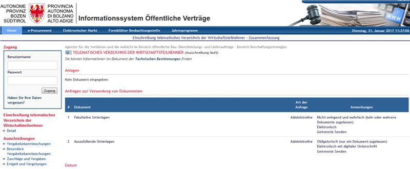 Teil dieses Gesamtsystems, das den öffentlichen Verwaltungen einen preiswerteren und effizienteren Ankauf von Leistungen und Produkten ermöglicht, ist das große Adressenverzeichnis der Wirtschaftsteilnehmer mit insgesamt 18.000 Eintragungen sowie das zweite, sogenannte „Telematische Verzeichnis“. Dieses ist bereits seit Juli im Vergabeportal des Landes aktiv, verfügt aber erst über 900 registrierten Firmen. Es stellt die gesetzliche Grundlage für all jene Verfahren dar, bei denen die öffentliche Verwaltung Unternehmen zu einem beschränkten Wettbewerb einlädt – und diese sind zahlenmäßig die allerhäufigsten.