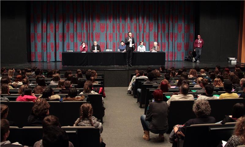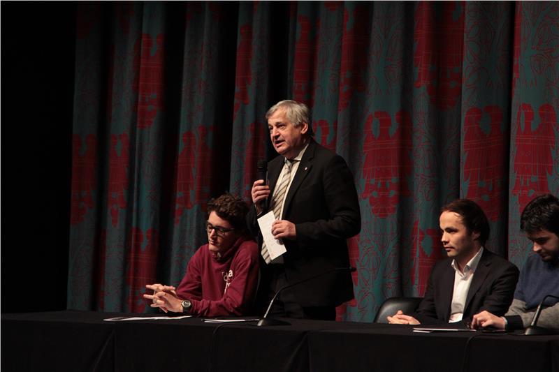 Heute (2. Februar) haben sich die 170 Südtiroler Teilnehmer des Projekts "Promemoria_Auschwitz. Die Reise der Erinnerung" zusammen mit Gleichaltrigen aus dem Trentino und Tirol auf den Weg gemacht. Im Mittelpunkt des Bildungsprojektes steht eine einwöchige Fahrt nach Polen, wo die Jugendlichen unter anderem das Konzentrationslager Auschwitz-Birkenau und die Fabrik von Oskar Schindler besichtigen werden. Die Landesräte Philipp Achammer und Florian Mussner haben die Gruppe am Nachmittag im Haus der Kultur in Bozen verabschiedet.