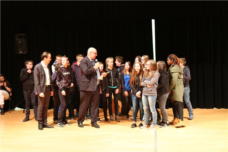 Auf der Bühne drehte sich beim Politiknachmittag alles um aktuelle Themen, wie Kindernachrichtensendungen, Martin Luther und die Reformation, den Islam und Europa oder die Auswirkungen unserer Ernährungsgewohnheiten auf die Umwelt. Die Schülerinnen und Schüler waren mit viel Kreativität und Einsatz, aber auch mit einem kritischen Geist an die Aufgabenstellungen herangegangen und haben oberflächliche Wahrheiten hinterfragt.