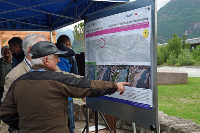 "Dieses Projekt", legte Zivilschutzlandesrat Arnold Schuler bei der heutigen Vorstellung dar, "vereinigt Hochwasser- und Naturschutz und Naherholung mitten in der Stadt Bozen". Entstanden ist ein landschaftlich attraktiver Flussabschnitt, der mit so vielen Naturelementen als möglich versehen ist. "Wer den Fluss nutzt, investiert jetzt auch in den Fluss", verwies der Direktor der Agentur für Bevölkerungsschutz Rudolf Pollinger auf die Finanzierung durch den Südtiroler Stromkonzern Alperia und dankte allen Beteiligten.