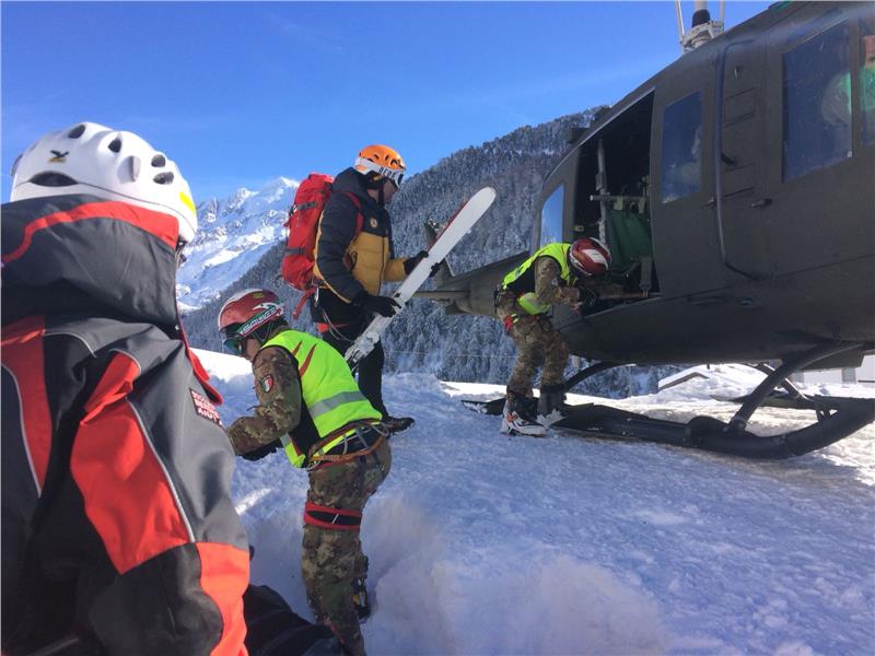 Drei Transporthubschrauber des Heeres und ein Hubschrauber der Carabinieri sind im Einsatz. Pro Hubschrauber können sieben Personen transportiert werden. Ein Hubschrauber der Finanzwache transportiert Einsatzpersonal und Gerätschaften. Die Rettungshubschrauber Pelikan 1 und Pelikan 2 sind vor Ort und in Bereitschaft für medizinische Notfälle.