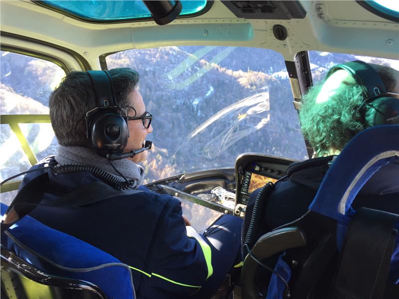 Nach der Pressekonferenz, bei der er über die aktuelle Situation in Langtaufers berichtete (Pressemitteilung), ist Landeshauptmann Arno Kompatscher heute (23. Jänner) kurz vor 13.30 Uhr mit Regierungskommissär Vito Cusumano vom Sitz der Agentur für Bevölkerungsschutz in Bozen zu einem Erkundungsflug ins Obere Vinschgau gestartet, um sich einen Überblick über die aktuelle Lage zu verschaffen.