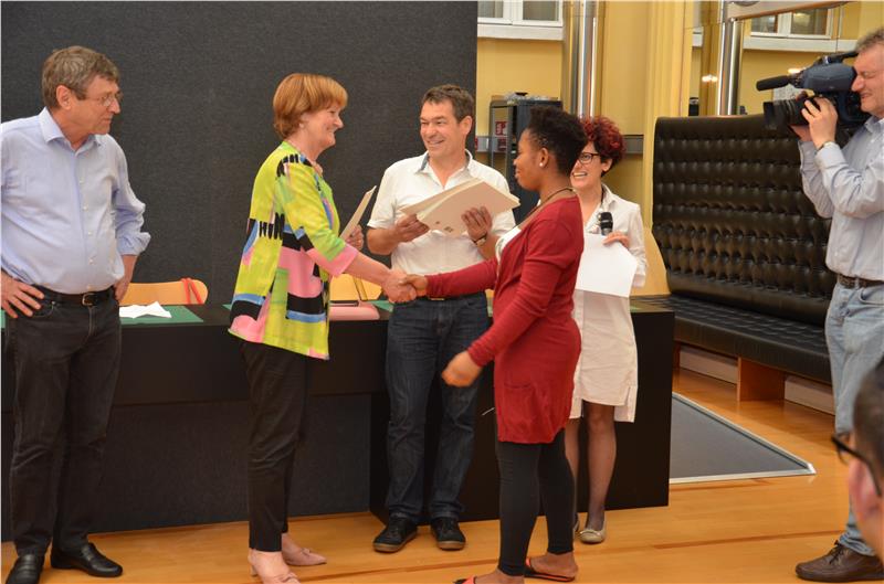 Heute Nachmittag (28. Mai) überreichte Soziallandesrätin Martha Stocker an 50 Asylbewerber die Teilnahmebescheinigungen des Kurses zum Pilotprojekt “hamet2F”, das darauf ausgerichtet ist, die beruflichen Fähigkeiten der Teilnehmer festzustellen und ihnen so den Weg in den Arbeitsmarkt zu erleichtern. “Mit dieser Bescheinigung habt ihr bessere Chancen auf dem Südtiroler Arbeitsmarkt”, sagte Stocker und wies darauf hin, dass es in Südtirol auch wichtig ist, beide Landessprachen zu sprechen.