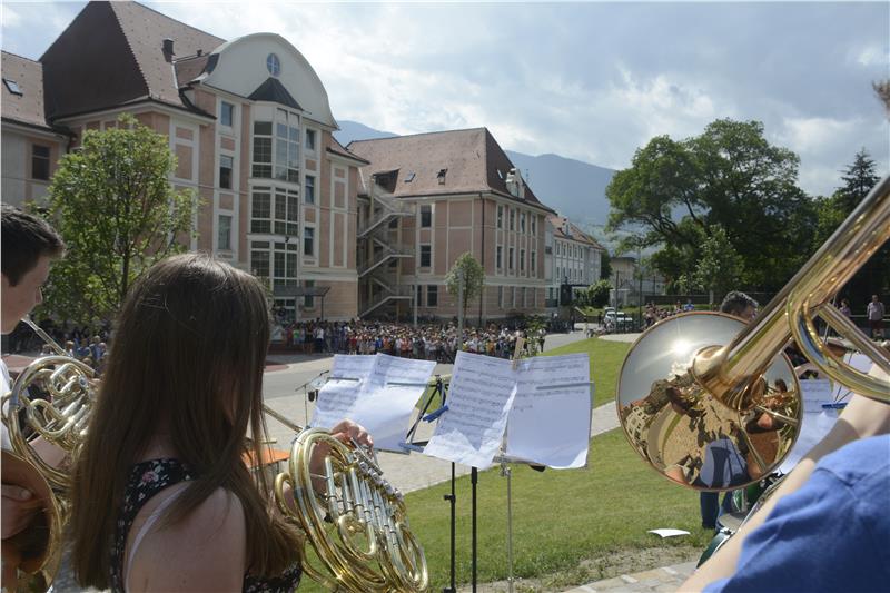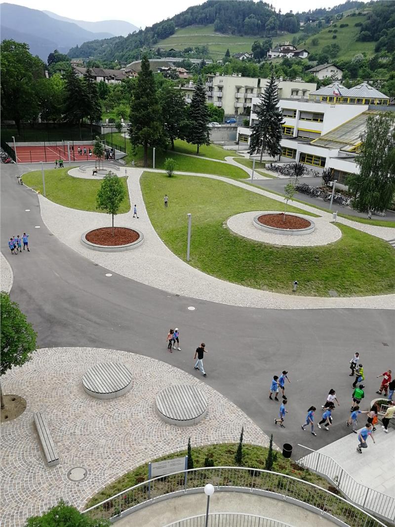 Gleich mehrere deutsche und italienische Schulen in der Brixner Dantestraße teilen sich einen Pausenhof. Dieser wurde in den vergangenen Monaten komplett saniert und neugestaltet. Die über 1000 Schüler der Grundschule "V. Goller", der Mittelschulen "O. v. Wolkenstein" und "A. Manzoni" sowie des Oberschulzentrums "J. Ph. Fallmerayer" haben heute (31. Mai) ihre Freude darüber mit viel Musik und Gesang zum Ausdruck gebracht.