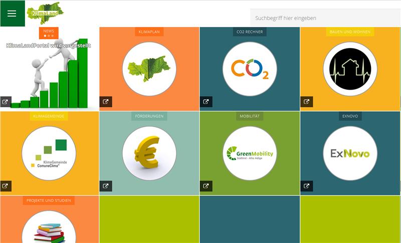 Auf der Startoberfläche finden sich Informationen und Direkt-Links zu den Angeboten des Landes und seiner Partner in Sachen Klimaschutz: So sind Informationen zum Klimaplan ebenso direkt zugänglich wie jene zum Bauen und Wohnen und zu den Förderungen des Landes im Bereich der Energieeffizienz. Einen besonderen Stellenwert nimmt die neue Seite "ExNovo - Plattform für ein bewusstes und klimafreundliches Konsumverhalten" ein, auf der Interessierte Second Hand Angebote veröffentlichen oder Reparatur-Dienstleister finden können. Auch auf die anstehenden Green Events, den Bereich Green Mobility, den CO2-Rechner und die Umweltbildung macht das neue Portal, das interaktiv angelegt ist und laufend ergänzt wird, aufmerksam.