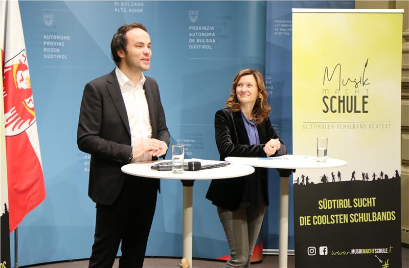 "Musik macht Schule" ist der Titel des ersten Südtiroler Schulband-Contests. Bildungslandesrat Philipp Achammer stellte die neue Initiative des Landes Südtirol und des Vereins Liederszene Südtirol / rocknet.bz heute (15. Februar) im Landhaus 1 in Bozen vor. "An Südtirols Mittel- und Oberschulen gibt es zahlreiche Bands, die tolle Musik machen. Der Südtiroler Schulband-Contest will ihnen eine Bühne bieten, auf der sie sich und ihr Können auch im Namen ihrer Schule einem breiten Publikum präsentieren", sagte der Bildungslandesrat.