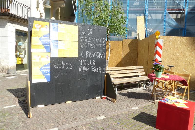 Die Aktionstage Politische Bildung sind heute Vormittag (2. Mai) am Kornplatz in Bozen eröffnet worden. "Politische Bildung soll Menschen dazu ermutigen an gesellschaftlichen und demokratischen Entwicklungen und Entscheidungen teilzuhaben", betonte dabei Martin Peer, Direktor im Landesamt für Weiterbildung, das die Aktionstage koordiniert und zur heutigen Eröffnung eingeladen hatte. Diese Teilhabe könne auf verschiedenste Art und Weise und durch unterschiedliche Initiativen und Aktionen erfolgen. Viele solcher Initiativen und Teilhabemöglichkeiten bieten auch in diesem Jahr die Aktionstage politische Bildung, die in Südtirol vom 2. bis 9. Mai zum zwölften Mail seit 2008 veranstaltet werden. Rund 30 Veranstaltungen zum Schwerpunktthema "Du gestaltest Zukunft!" und anderen Themen bieten der Bevölkerung die Möglichkeit sich zu informieren, sich einzubringen und mit zu diskutieren, sich eine Meinung zu bilden.