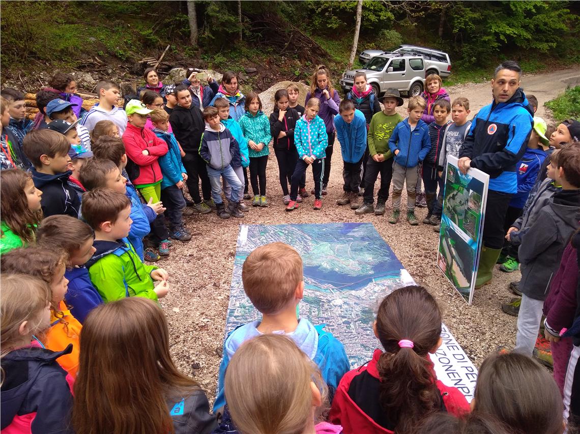 Am Prissianerbach bei Gfrill, wo ein Murgang in der Vergangenheit zu Verwüstungen geführt hatte, wurden die mitgebrachten Bäumchen gesegnet. An drei Stationen konnten sich die Kinder in drei Gruppen aktiv einbringen: So wurden die Bäumchen unter Anleitung der Förster eingepflanzt, eine Kugelbahn mit dem vor Ort im Wald gefundenen Material gebaut und in einem Lernspiel die Vorteile des modernen Hochwasserschutzes durch Schaffung von naturnahen Flussläufen aufgezeigt.