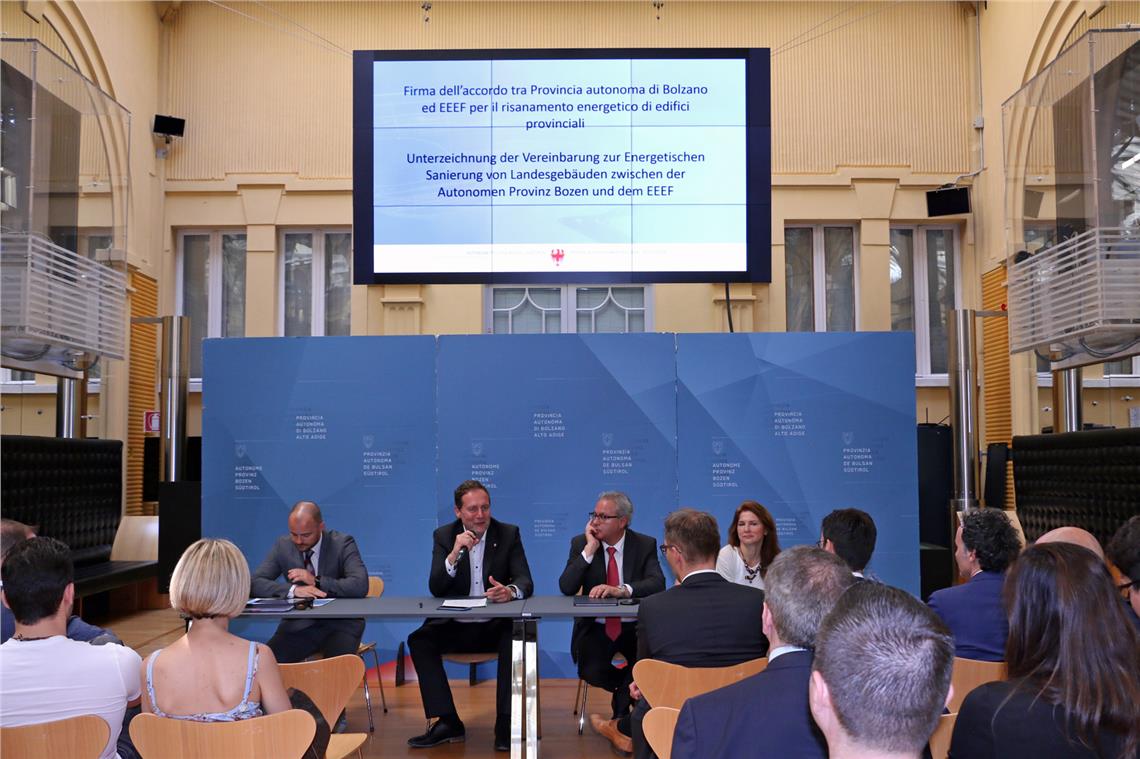 Er rechne damit, die erste Investitionsausschreibung bis 2020 veröffentlichen z können, sagte Landesrat Bessone. "Wir haben hier eine Win-Win-Operation, denn wir sanieren die Landesgebäude praktisch kostenlos und wir brauchen außerdem durch die Sanierung künftig weniger Energie, was wiederum weniger Kosten für die Verwaltung sowie weniger Kohlenstoffdioxid (44 Tonnen könnten schätzungsweise eingespart werden) und weniger Umweltverschmutzung bedeutet", betonte Bessone. Vorwiegend kleine und mittlere Unternehmen sollten von den Aufträgen profitieren, so der Landesrat."Das Programm unterstützt die Ziele der Europäischen Union zur Förderung eines nachhaltigen Energiemarktes und des Klimaschutzes", unterstrich eeef-Vertreterin Strelnikova. "Es ist ein strategisches Ziel der Landesabteilung Vermögen für die insgesamt 263 Immobilien in Landesbesitz mit insgesamt einer Million Quadratmeter Fläche gemeinsam mit dem Forschungszentrum Eurac Research und der KlimaHaus-Agentur einen Gesamtenergieeffizienzplan zu entwickeln – derzeit läuft dazu ein Audit zum Energieverbrauch", sagte Bedin.