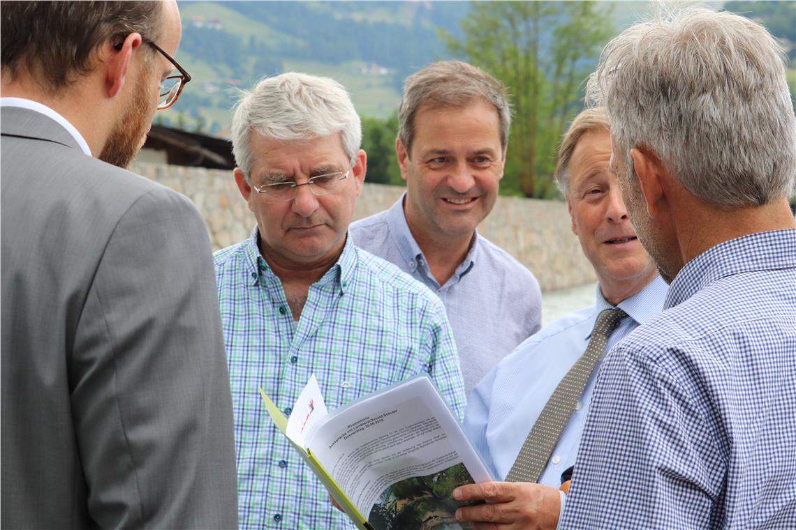 Schutz vor Naturgefahren und die ökologische Aufwertung der Bach- und Flussläufe sind Anliegen der Verbauungsmaßnahmen, von denen Landesrat Schuler gestern (20. Juni) einige besichtigt hat.
