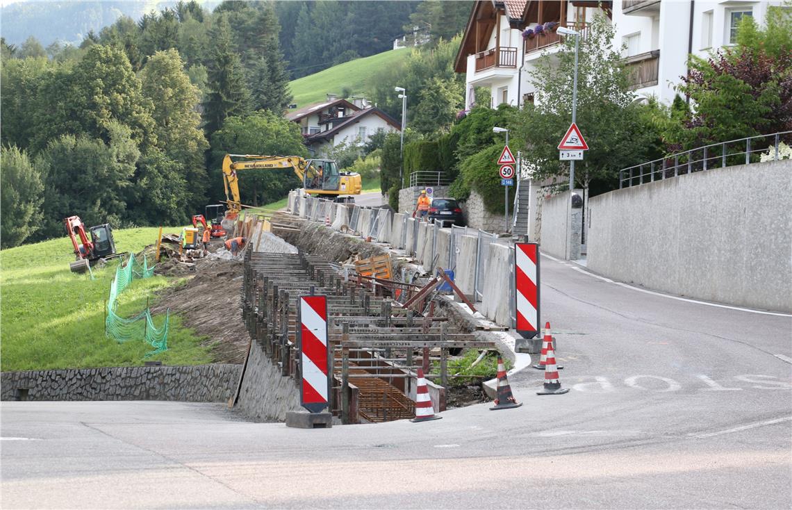 Bereiche für Zufahrten und Zugängen bleiben offen. Mit drei neuen Lichtpunkten wird zudem die Straßenbeleuchtung bis zur Kreuzung weitergeführt. "An dieser Kreuzung werden die Sichtverhältnisse für Fahrzeuglenker und Fußgänger verbessert, indem die Böschung nördlich der Kreuzung etwas abgenommen wird", erklärt Tiefbauabteilungsdirektor Valentino Pagani, der sich gemeinsam mit Vertretern der Gemeinde Brixen, dem Projektverantwortlichen, dem Planer Hansjörg Jocher sowie Vertretern der Baufrima ein Bild von den nun gestarteten Arbeiten gemacht hat. Entlang des neuen Straßenabschnittes wollen die Stadtwerke Brixen parallel zu den Arbeiten einen neuen Regenwasserkanal einbauen. "Durch verschiedene Strukturierungsmaßnahmen wie Pflasterungen oder Rampen wird der Straßenabschnitt außerdem in puncto Verkehrsberuhigung und Sicherheit verbessert", erklärt Pagani.