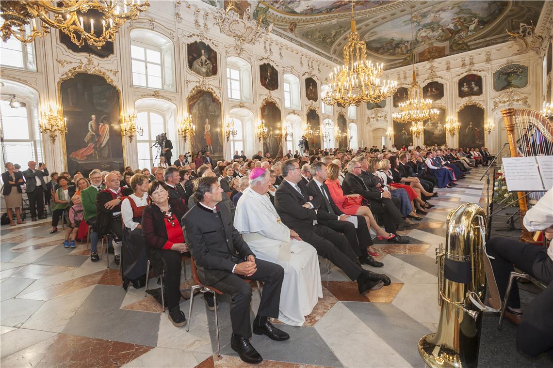 Über 200 Persönlichkeiten, darunter 42 aus Südtirol, haben LH Kompatscher und LH Platter am 15. August in Innsbruck für ihre Verdienste mit Kreuzen und Medaillen ausgezeichnet.