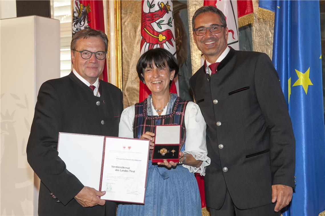 Sich für das Gemeinwohl einsetzen und anderen helfen - Diese Lebenseinstellung zeichnet viele Menschen in Südtirol und Tirol aus. Traditionell stehen diese Personen am Hochunserfrauentag in Südtirol und Tirol im Mittelpunkt. So haben die Landeshauptleute von Südtirol und Tirol Arno Kompatscher und Günther Platter heute, 15. August, in der Hofburg in Innsbruck rund 200 Männer und Frauen aus Nord-, Ost- und Südtirol für ihr Engagement zum Wohl der Allgemeinheit ausgezeichnet. Neun verdiente Menschen aus Südtirol wurden mit dem Verdienstkreuz und somit der dritthöchsten Auszeichnung des Landes Tirol geehrt: Reinhard Demetz, Karl Fink, Helmut Groschup, Heinz Gutweniger, Regina Holzer, Fernanda Mattedi Tschager, Walter Mitterrutzner, Renate Mühlögger Tschager, Hiltraud Neuhauser Erschbaumer und Johann Passler. 27 verdiente Südtirol wurden mit der Verdienstmedaille ausgezeichnet (siehe Anlage).