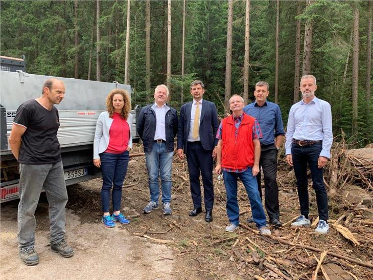 Mobilitäts- und Infrastrukturenlandesrat Daniel Alfreider hat sich kürzlich mit dem geschäftsführenden Direktor des Straßendiensts Philipp Sicher, den Gemeindevertretern, Technikern der Landesabteilung Straßendienst und den Eigentümern ein Bild von der Lage gemacht.