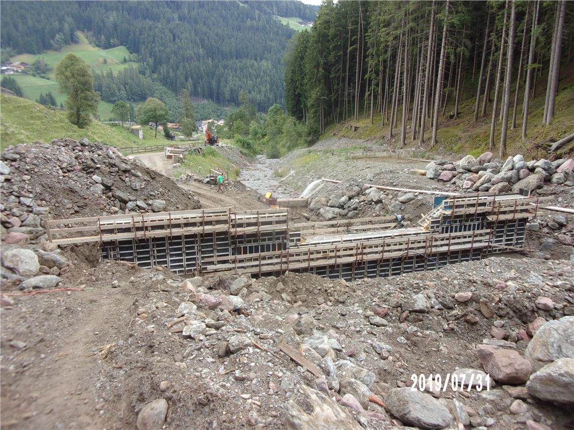 Das Landesamt für Wildbach- und Lawinenverbauung Nord der Agentur für Bevölkerungsschutz war seit Herbst vergangenen Jahres damit beschäftigt, den Abschnitt im Öttenbach unterhalb eines bereits bestehenden Rückhaltebeckens zu befestigen. Mit dieser Maßnahme, erklärt Projektant und Bauleiter Philipp Walder, werden nun Überschwemmungen bei der Handwerkerzone und der Zufahrtstraße vermindert.